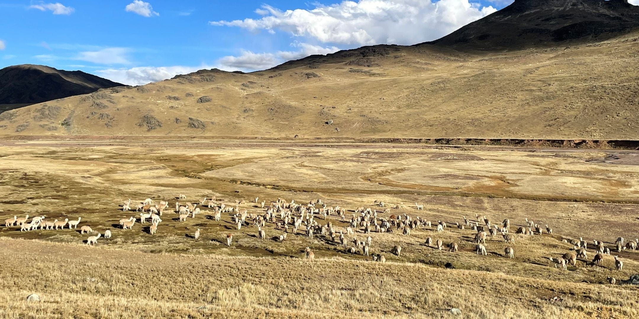Alpacas roam the Andean Highlands together with their alpaca breeders (= alpaquero) and follow the availability of grass through the mountains. A healthy environment equals a healthy herd equals a healthy alpaquero. This mutually beneficial relationship is a perfect example of sustainable alpaca farming.