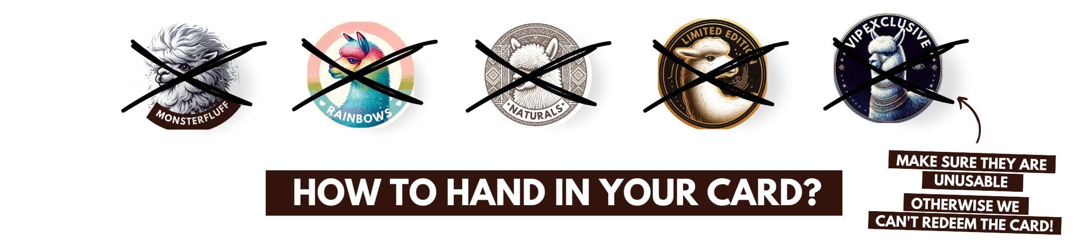 2. Send a picture of your marked Collector Card to our Alpaca Experts at support@inkari-alpaca.com with the subject ''I like to claim my Paca Points Discount”. In this email let us know which size (Mini or Small) and color (Naturals, Rainbow, Barista, Monsterfluff) you’d like to use the discount for!